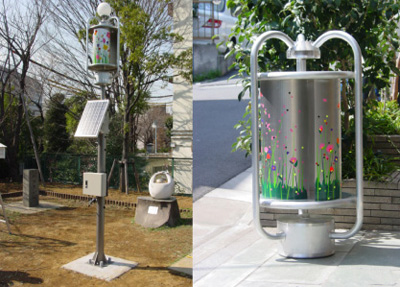 これまでのプロペラを回転させて発電するものとはことなり、軸を地面に垂直して回転するため、どの向きから風が吹いても発電します。