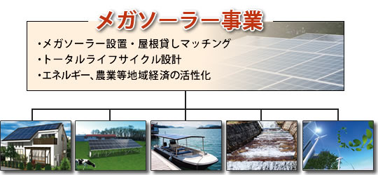 メガソーラー事業だけで考えるのでなく、創出したエネルギーを有効利用したり、生活、産業、農業への応用、省エネや蓄エネと組合せて活用するアイデアをたくさん提案して、自然エネルギーと調和するライフスタイル作りのお手伝いをします。